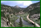 Eleven Mile CanyonThe first Colorado Midland passenger train chugged up Granite Canyon (now Elevenmile Canyon) in 1887. A very scenic gravel road now retraces the old Colorado Midland grade where locomotive residue can still be seen around railroad tunnels blasted through solid granite. |